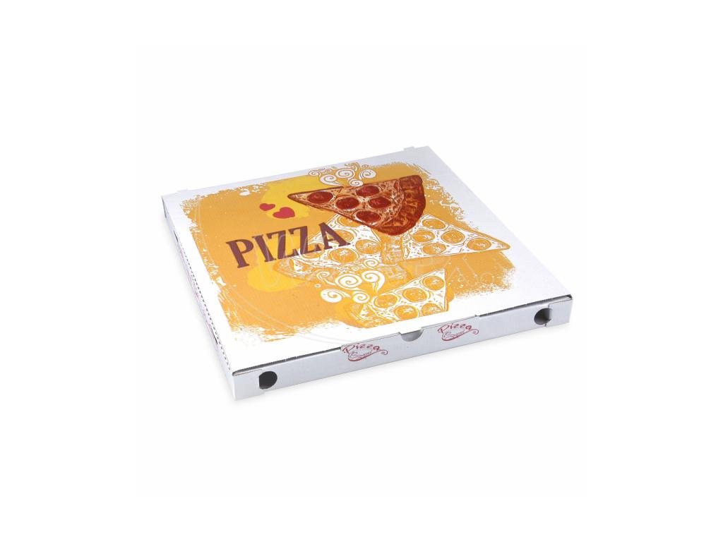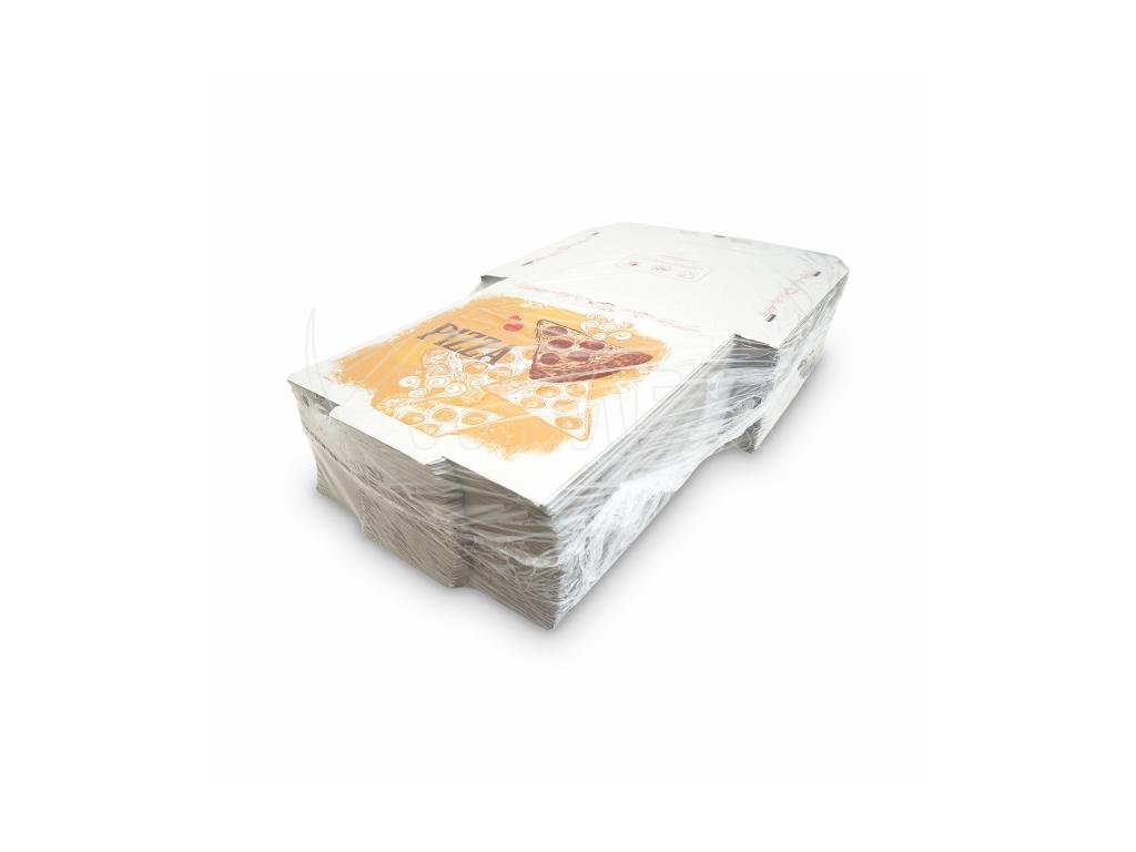 Krabice na pizzu (mikrovlnitá lepenka) C4 bílá s potiskem 34,5 x 34,5 x 3 cm [100 ks]Doplňkové parametry
