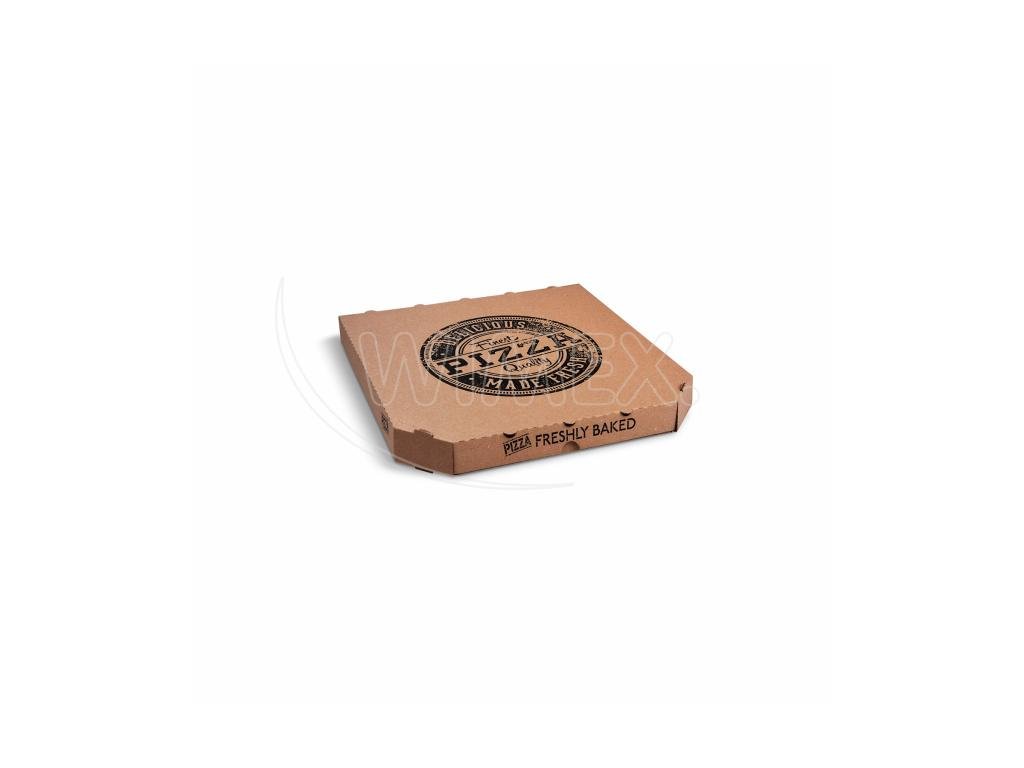 Krabice na pizzu (mikrovlnitá lepenka) E6 kraft s potiskem 33 x 33 x 3 cm [100 ks]