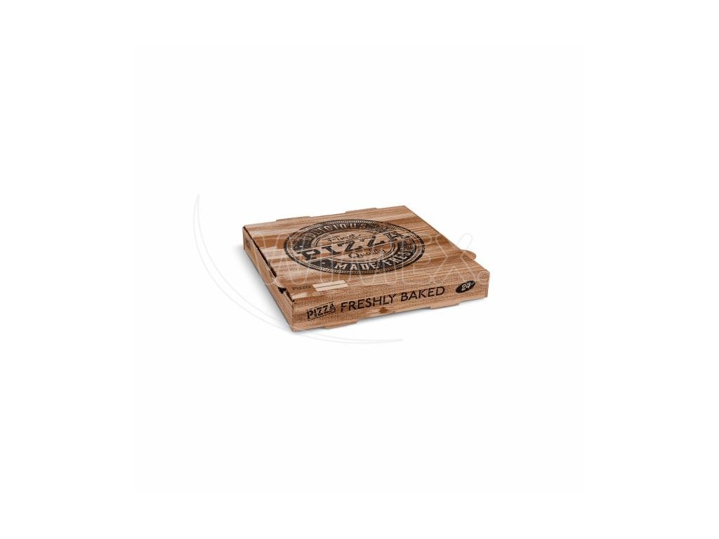 Krabice na pizzu (mikrovlnitá lepenka) H4 kraft s potiskem 24 x 24 x 4 cm [100 ks]