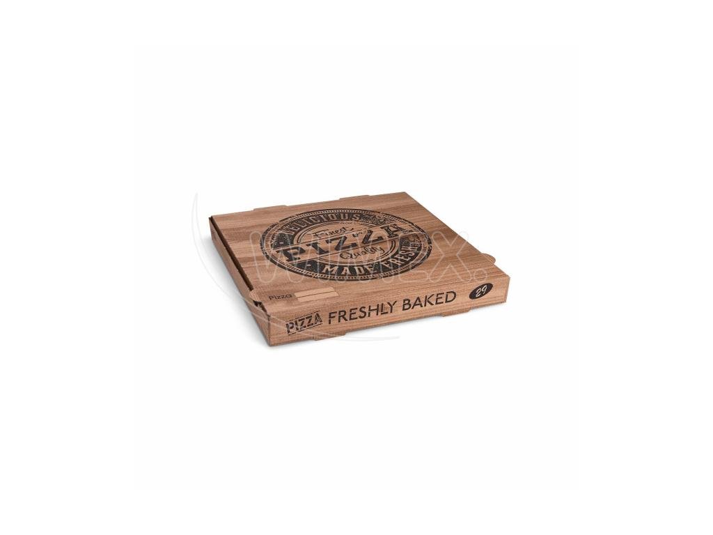 Krabice na pizzu (mikrovlnitá lepenka) H4 kraft s potiskem 29 x 29 x 4 cm [100 ks]
