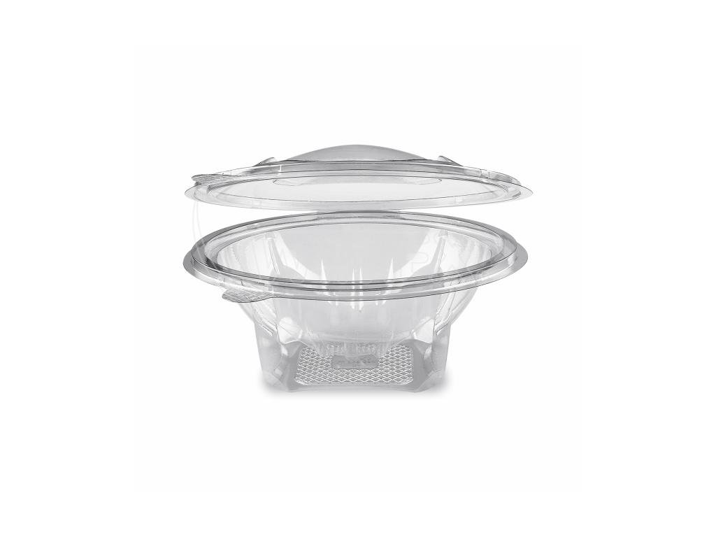 Miska (rPET) s víčkem kulatá průhledná 600ml [50 ks]