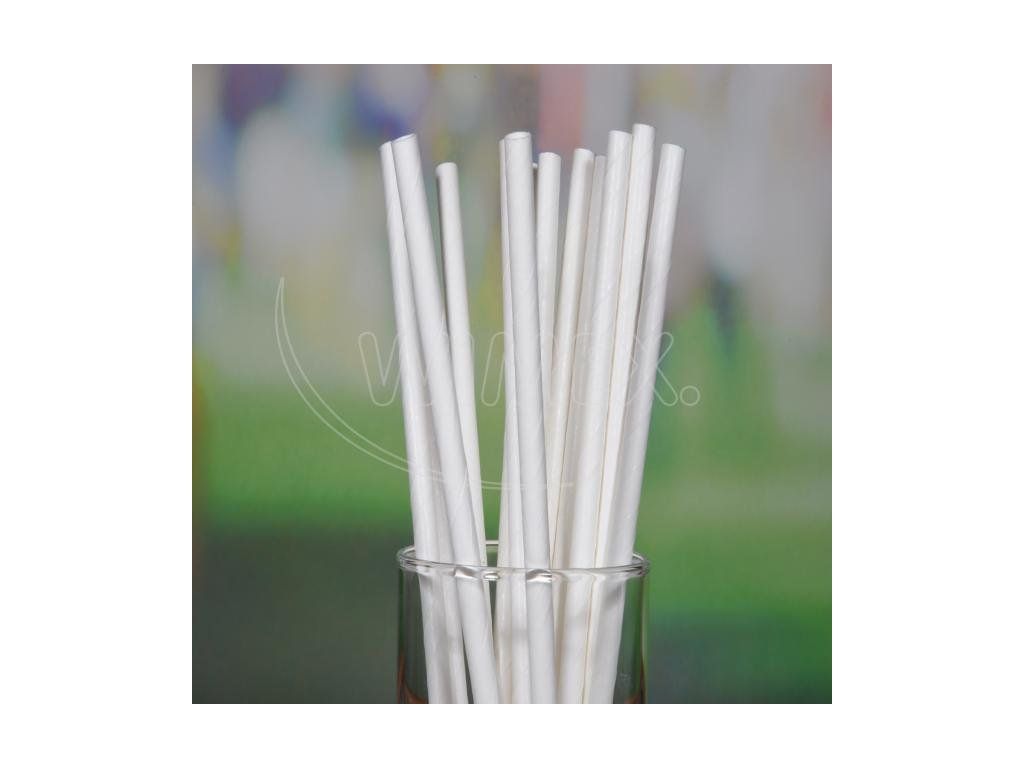 Slámka papírová bílá Ø6mm x 20cm [100 ks]