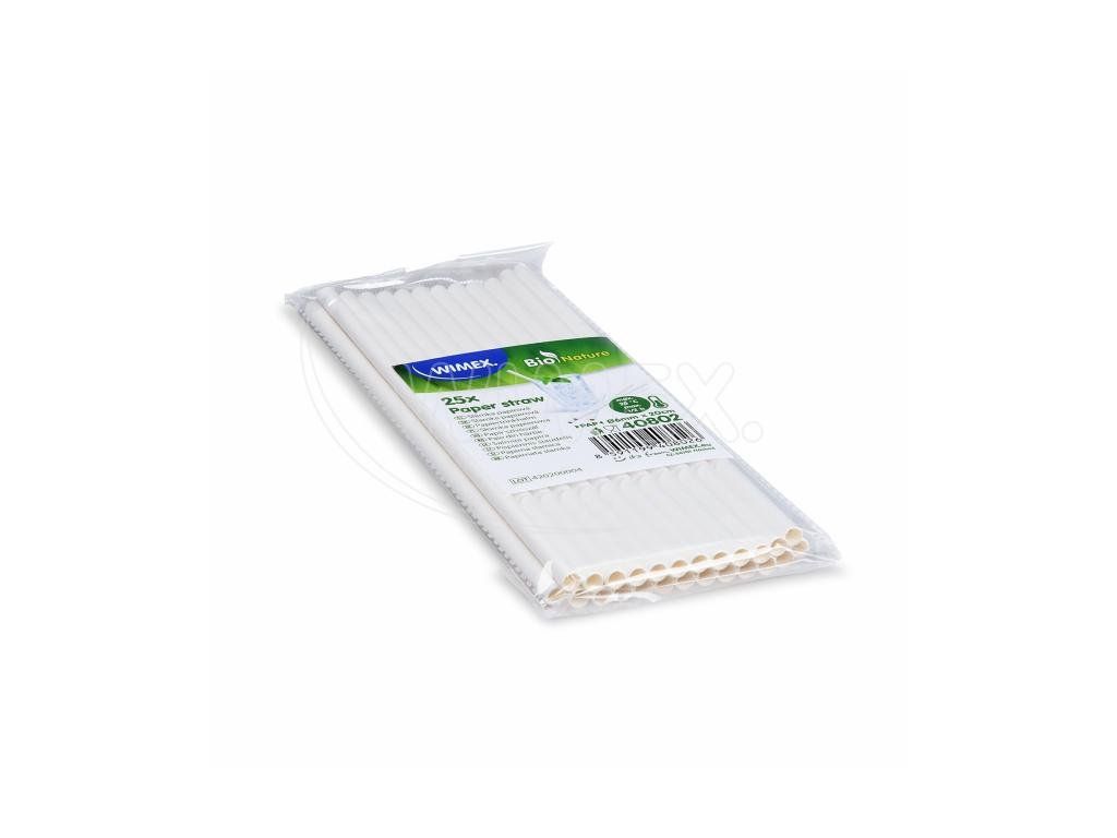 Slámka papírová bílá Ø6mm x 20cm [25 ks]