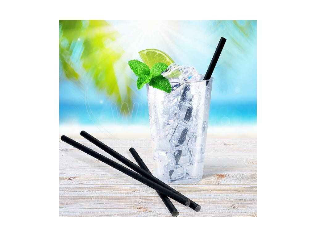 Slámka papírová černá `JUMBO` Ø8mm x 25cm [100 ks]