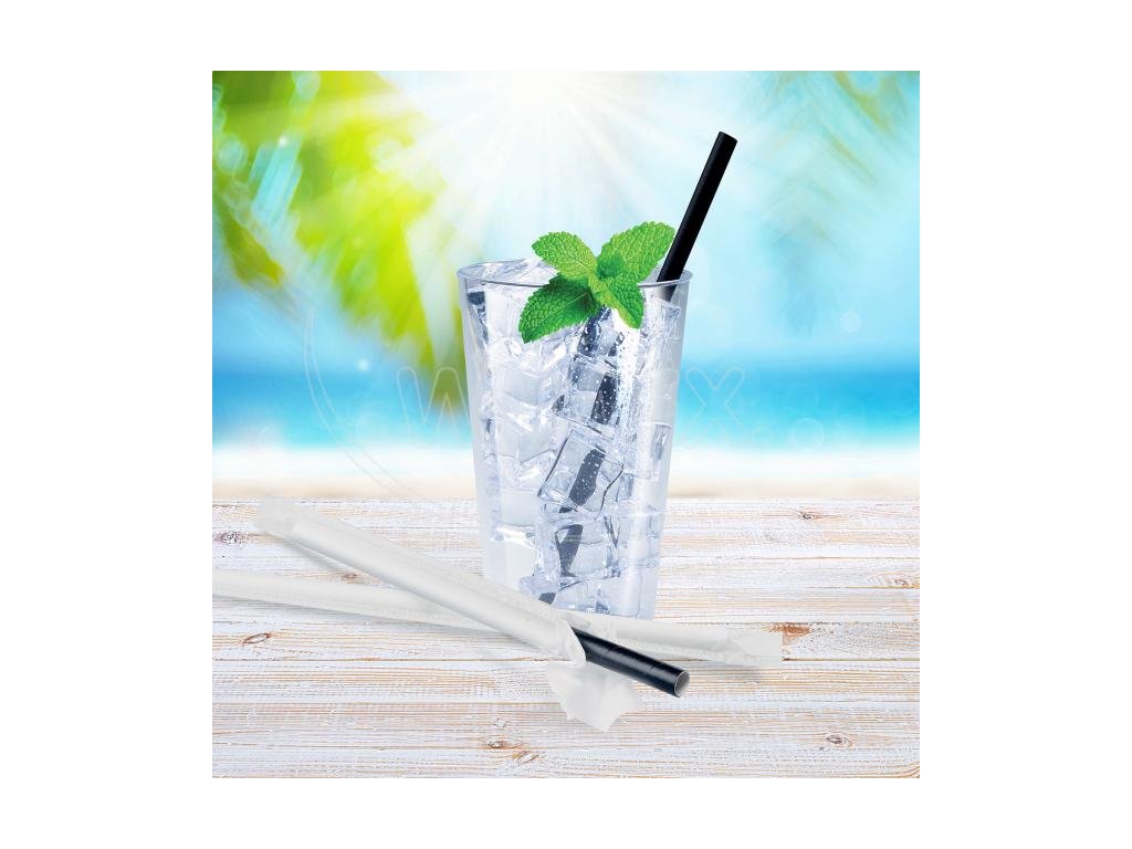 Slámka papírová černá `JUMBO` Ø8mm x 25cm jednotlivě balená [100 ks]Doplňkové parametry