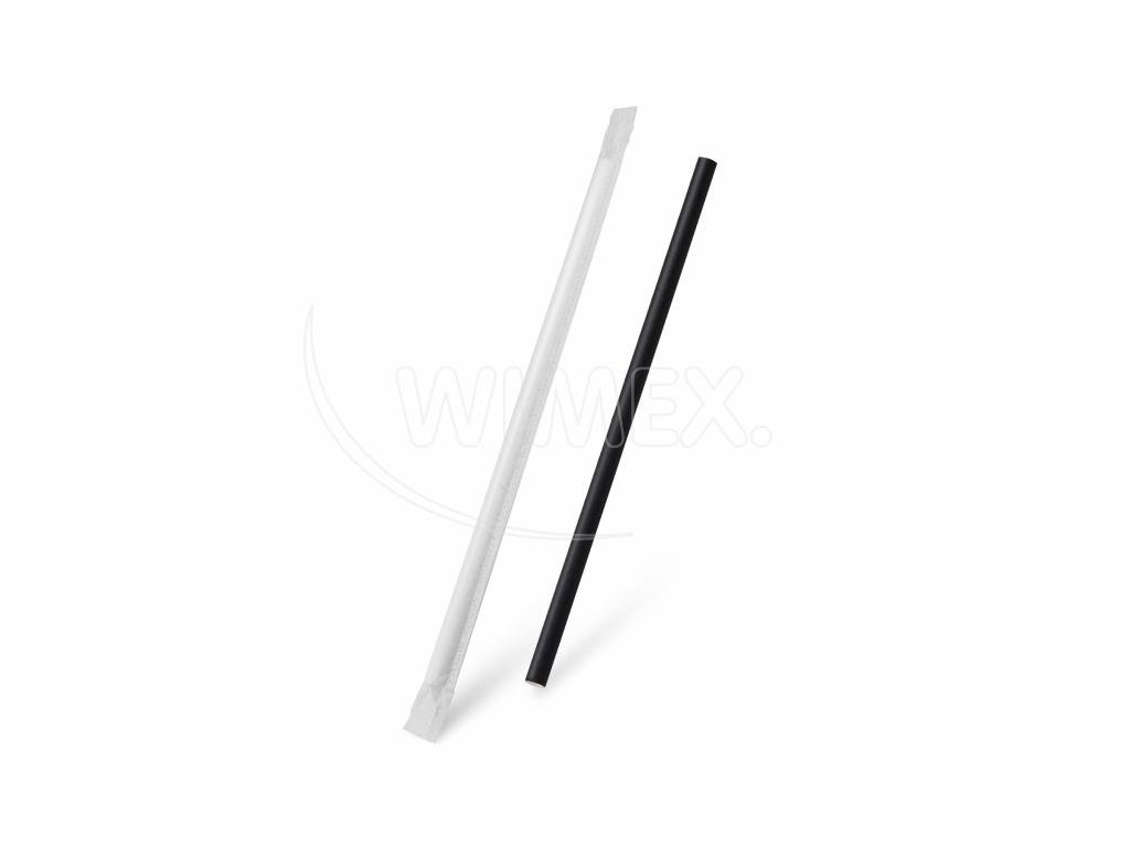Slámka papírová černá `JUMBO` Ø8mm x 25cm jednotlivě balená [100 ks]
